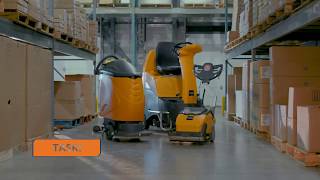 TASKI® swingo 755 B and 755 E Walk-behind 17 inch (43 cm) auto scrubber drier offers maximum agility in confined areas with a dual-axle system that allows ...