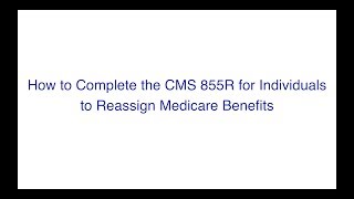 - How to Complete the CMS 855R for Individuals to Reassign Medicare Benefits